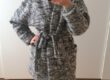 Den Ober- und Unterstoff habe ich zunächst zusammengeheftet und dann gemeinsam mit der Overlock versäubert. Danach mußte ich nur noch die Schulter- und Seitennähte schließen (die Taschen habe ich weggelassen) und es auf meine Größe anpassen, da mir das Originalmodell nämlich viel zu lang war.